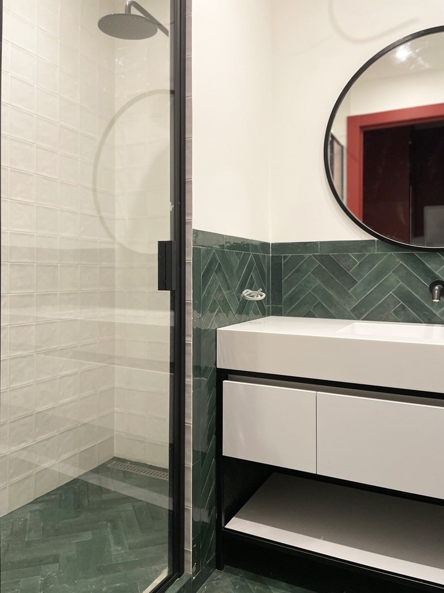 Санузел: тумба на металлокаркасе, столешница из искуственного камня с интегрированной мойкой. Здесь у нас не прошло без заморочек - сварная тумба это раз. Столешка из искусственного камня с имитацией большой толщины, с прямоугольной интегрированной мойкой определенного оттенка белого это два. И зеркало) Казалось бы, ну зеркало и зеркало, а вот нет. Делали мы рамку к нему самостоятельно, возили МДФ на резку на ЧПУ, потом собирали, клеили и красили все это дело. Все из-за определенного размера. А как все это дело заносили через узкую дверь в помещение санузла... Металл, камень, плитка, стекло душевой кабинки и минимальные зазоры... Учитывая, сколько было "нюансов" - на этом объекте было реально страшно. #тЫквинЛес #санузел #СУ #мебель