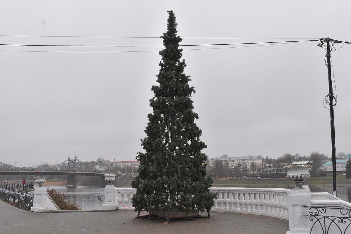 Новогодние ёлки, которые в ближайшие дни украсят шарами и светодиодными гирляндами, начали устанавливать на площади Ленина и в Городском саду.
