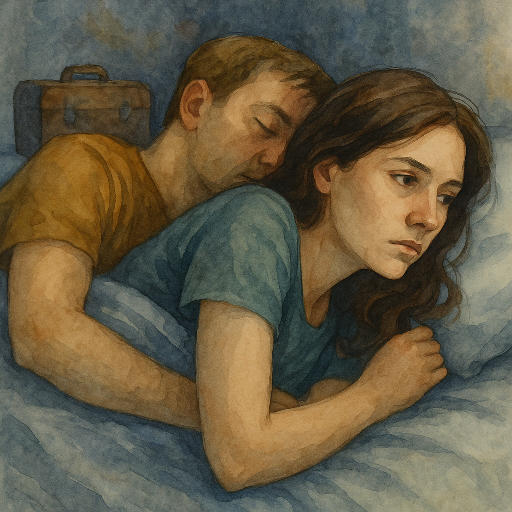 В комнате было полутемно. Ночной город просачивался через щель в шторе — где-то мигала реклама, шевелились фары. Тишину разрезал только храп соседей сверху и его ровное, чужое дыхание у неё за ухом.