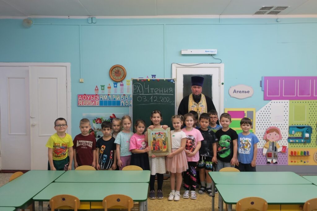 3 декабря 2025 года в рамках проведения ХХIII Московских областных Рождественских образовательных чтений в мкрн. Пироговский г. Мытищи состоялись просветительские встречи настоятеля Преображенского храма д. Пирогово протоиерея Сергия Белокрылова с воспитанниками дошкольного отделении «Берёзка» школы № 19. В интерактивной форме, отвечая на вопросы священника, дети укрепили представление о существовании для себя внешнего, внутреннего и духовного мира. Очевидным предстала связь между чистым сердцем и добрыми делами человека, грехом и разрушительными деяниями исполненного злом грешника. В завершение занятий протоиерей Сергий рассказал о наступавшем празднике Введения во храм Пресвятой Богородицы. На праздничной иконе дети смогли внимательно рассмотреть образ Богоотроковицы, грядущей в Храм Господень, и Пресвятой Богородицы, принимающую от Архангела Гавриила Благую весть о Боговоплощении.