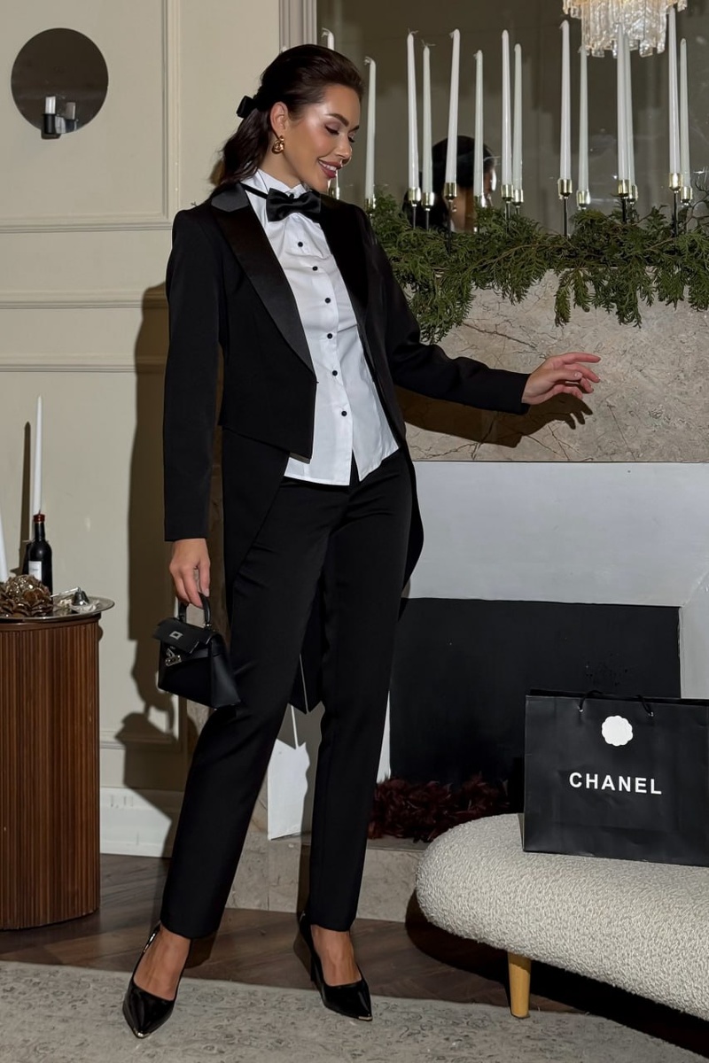 💎 Есть женщины, которые выбирают платье. А есть те, кто выбирает эффект. ✔️ Черный женский фрак - это про второй вариант. Про уверенность в каждом движении, про четкую линию плеч, про тот самый силуэт, который делает образ не просто нарядным, а выразительным и запоминающимся. Фрак в женском исполнении - это гармония силы и элегантности. Удлиненная спинка, аккуратные лацканы, белая рубашка под смокинг, классические брюки - все работает на один результат: вы выглядите так, как будто вечер создан именно для вас. Это образ для событий, где нужно сказать больше, чем «я пришла». Для корпоратива, премьеры, презентации, праздничного ужина или фотосессии, где хочется быть не в тренде - а выше него. Смокинг - идеальная альтернатива платью. Никакой суеты, никакого излишнего блеска. Только чистая, уверенная эстетика. Если вы давно хотели примерить что-то новое, сильное, женственное и безупречно стильное - кажется, вы только что нашли. КУПИТЬ https://urs.by/kostyumy/22-741-1 #фракженский #с