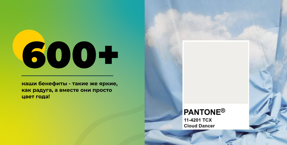 Каждый год эксперты Pantone внимательно изучают всё: культуру, технологии, настроения в обществе — и выбирают один оттенок, который становится символом грядущего года. И знаете, какой цвет будет задавать тон в 2026? Им стал величественный белый Cloud Dancer! ☁️✨ Белый — это не отсутствие цвета, это все цвета радуги, собранные вместе! И для нас это глубокая и красивая метафора. Поэтому с большой радостью представляем наши бенефиты - такие же яркие и разнообразные, как палитра радуги! 🌈 В нашем каталоге более 600 поставщиков в категориях Дом и быт, Дети, Здоровье, Спорт, Транспорт, Красота, Домашние животные и др. Наш кафетерий наполнен самыми полезными и ценными бенефитами, а ещё - что немаловажно! - всё это легко подстраивается под ваши правила и бюджеты. Что это значит на практике для HR-специалиста? Это значит, что мы берём на себя всю сложную работу по администрированию бенефитов, чтобы ваша команда получала идеальный опыт, а вы — спокойствие и экономию времени. Вот что стоит за н
