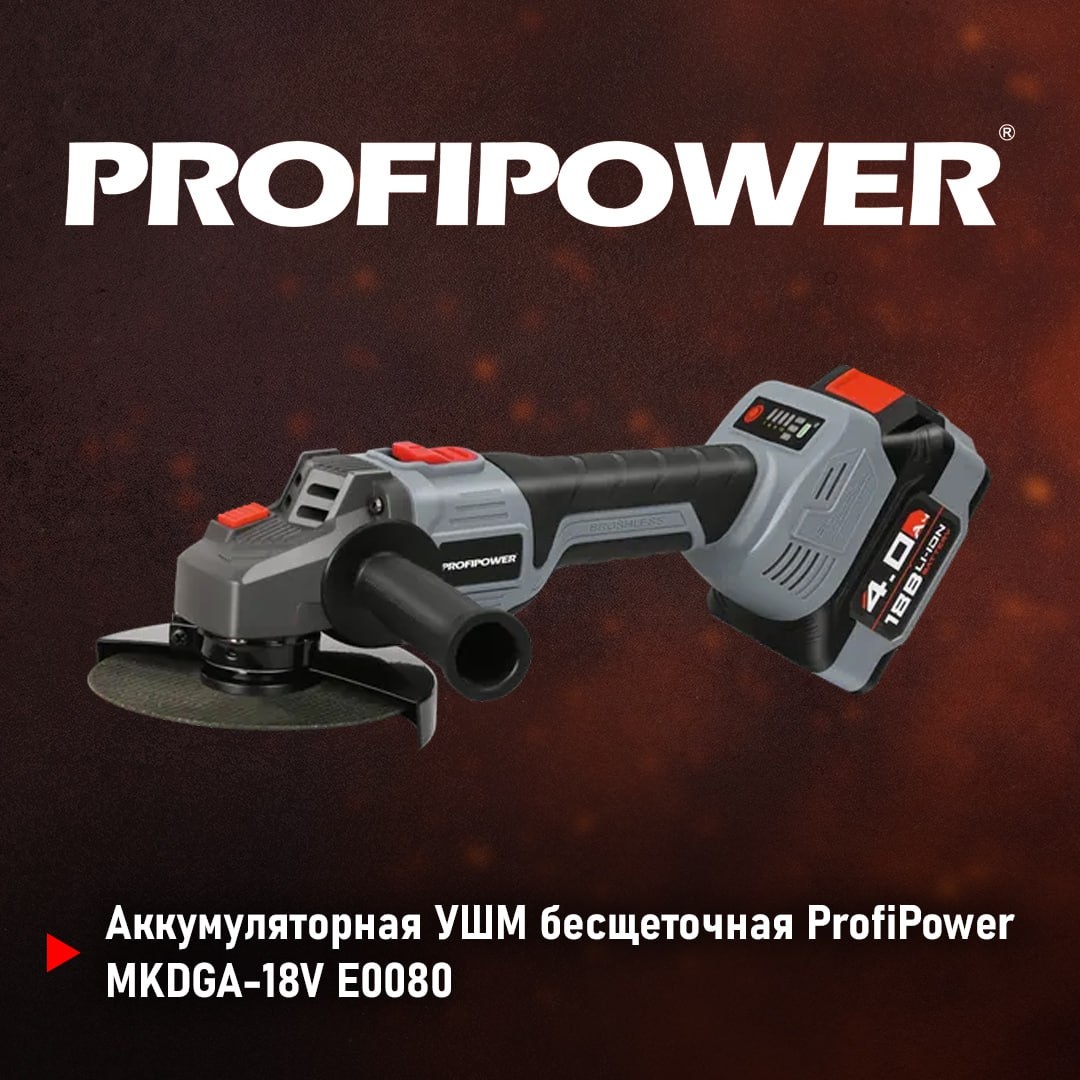 PROFIPOWER MKDGA-18V — мощная аккумуляторная УШМ для точной и безопасной работы 💪🏻 В автомастерской, сервисе или при выезде на ремонт всегда ценится инструмент, который не привязан к розетке. Резка арматуры, труб, стоек подвески, зачистка сварных швов, подрезка кузовных элементов — всё это удобнее выполнять компактной аккумуляторной УШМ. Мобильность ускоряет работу, а отсутствие кабеля делает процесс безопаснее и маневреннее. Именно под такие условия отлично подходит модель MKDGA-18V — профессиональная бесщеточная УШМ. Рассмотрим 5️⃣её ключевых преимуществ: ▪️Бесщеточный мотор: выдаёт стабильные обороты, не требует обслуживания и работает эффективнее классических двигателей; ▪️Мощность даже под нагрузкой: константная электроника + смарт-контролер защищают инструмент и экономят заряд; ▪️Долговечность: усиленный редуктор, подшипники NSK, арамидный бандаж и защита от пыли — для работы в жестких условиях сервиса; ▪️Удобство и безопасность: лёгкий эргономичный корпус, три режима работы