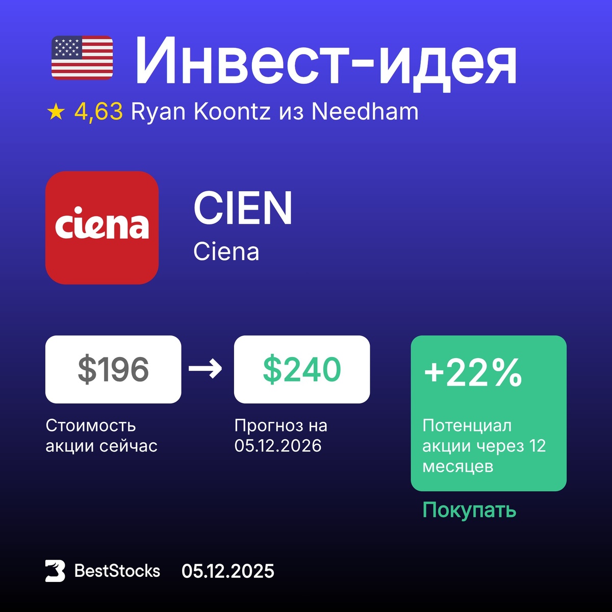 πΊπΈ ΠΠ½Π²Π΅ΡΡ-ΠΈΠ΄Π΅Ρ ΠΏΠΎ Π°ΠΊΡΠΈΠΈ Ciena Π’ΠΈΠΊΠ΅Ρ: CIEN ΠΡΠΎΠ³Π½ΠΎΠ·Π½Π°Ρ ΡΠ΅Π½Π°: $240 (+22%) Π Π΅ΠΊΠΎΠΌΠ΅Π½Π΄Π°ΡΠΈΡ: ΠΠΎΠΊΡΠΏΠ°ΡΡ InvestRank Π°ΠΊΡΠΈΠΈ: 9 ΠΈΠ· 10 ΠΡΠΎΠ³Π½ΠΎΠ· ΡΠ΄Π΅Π»Π°Π½: 05.12.2025 ΠΡΠΎΠ³Π½ΠΎΠ· Π΄ΠΎ: 05.12.2026 ΠΠ½Π²Π΅ΡΡ-ΠΊΠΎΠΌΠΏΠ°Π½ΠΈΡ: Needham ΠΠ½Π°Π»ΠΈΡΠΈΠΊ: Ryan Koontz ΠΡΡ ΡΠ΅ΠΊΠΎΠΌΠ΅Π½Π΄Π°ΡΠΈΠΈ Π½Π° ΡΠ΅Π³ΠΎΠ΄Π½Ρ β β’β’β’β’β’ π₯ ΠΠΎΠ»ΡΡΠ°ΠΉΡΠ΅ Π±ΠΎΠ»Π΅Π΅ 400 ΡΠ²Π΅ΠΆΠΈΡ