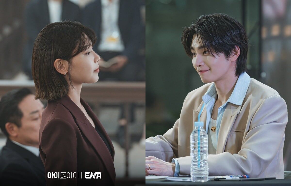 Суён в роли адвоката, которая защищает своего биаса Ким Джэ Ёна, в трейлере дорамы «Адвокат айдола»