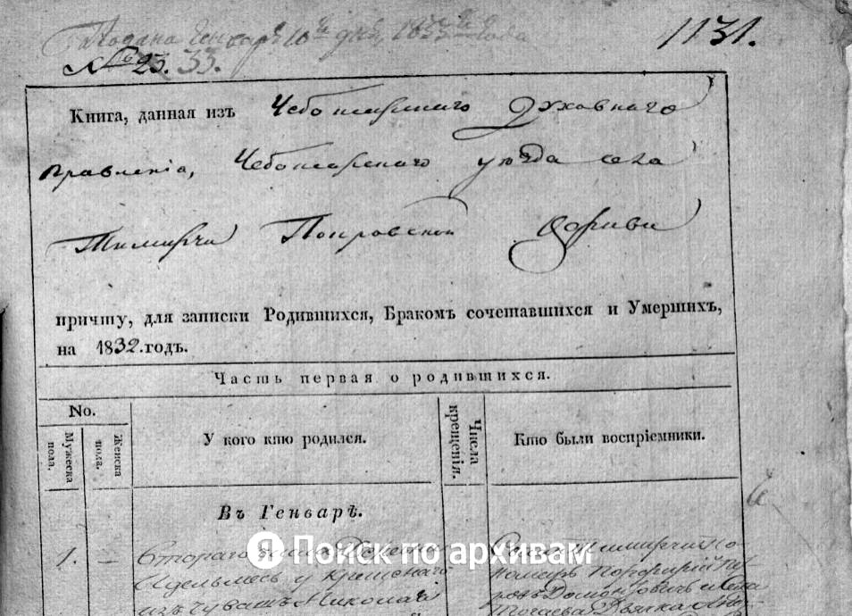 1832 год. Село Тимирчи. Чебоксарский уезд. Васильевский Алексей Петрович.