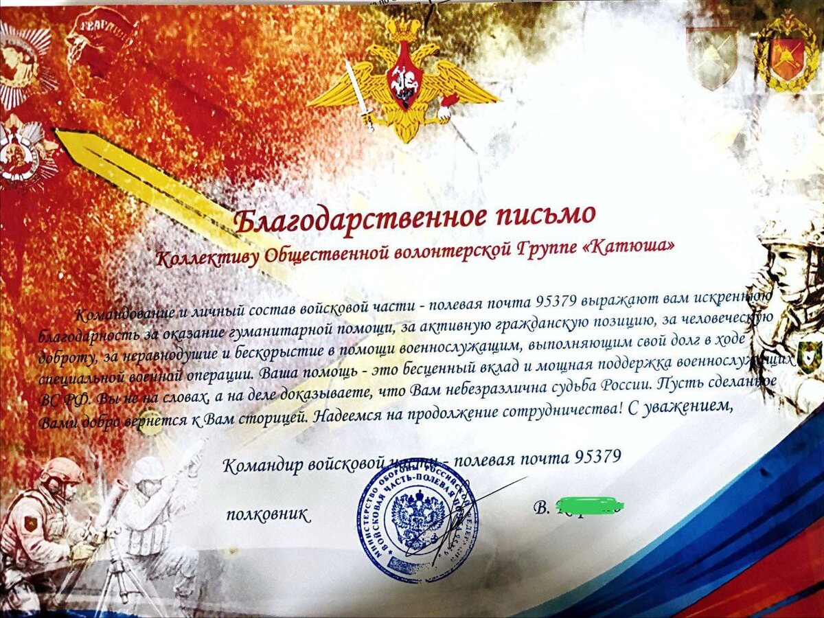 ⚡️Друзья! Бойцы из полка Иркут передали Благодарственное письмо. Всем вам, всему коллективу нашей группы «КАТЮША» низкий поклон за поддержку парней на СВО за помощь фронту. Спасибо Парни 🤝 Мы помогаем душой, искренне. Берегите себя, и возвращайтесь живыми и здоровыми 🙏