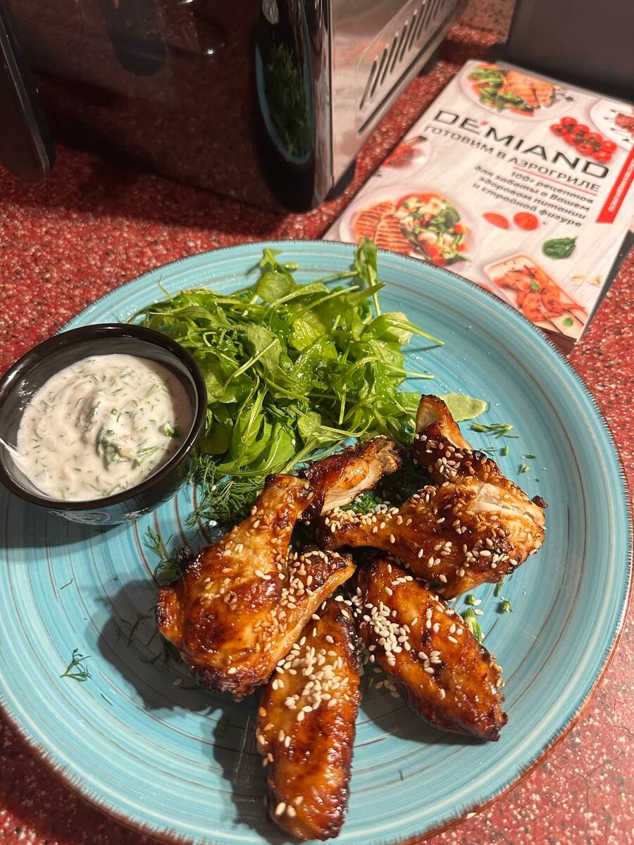 Когда надо быстро 💨 АЭРОГРИЛЬ ни капли масла Мой теперь любимый СОУС- домашний йогурт, зелень , чеснок , соль и перец Попробуй этот рецепт из приложения DEMIAND: Острые крылышки в азиатском стиле Смотри рецепт тут: https://ap.demiand.ru/recipe/c8fbb862-4b1c-4cf6-ab24-da5cd921284e