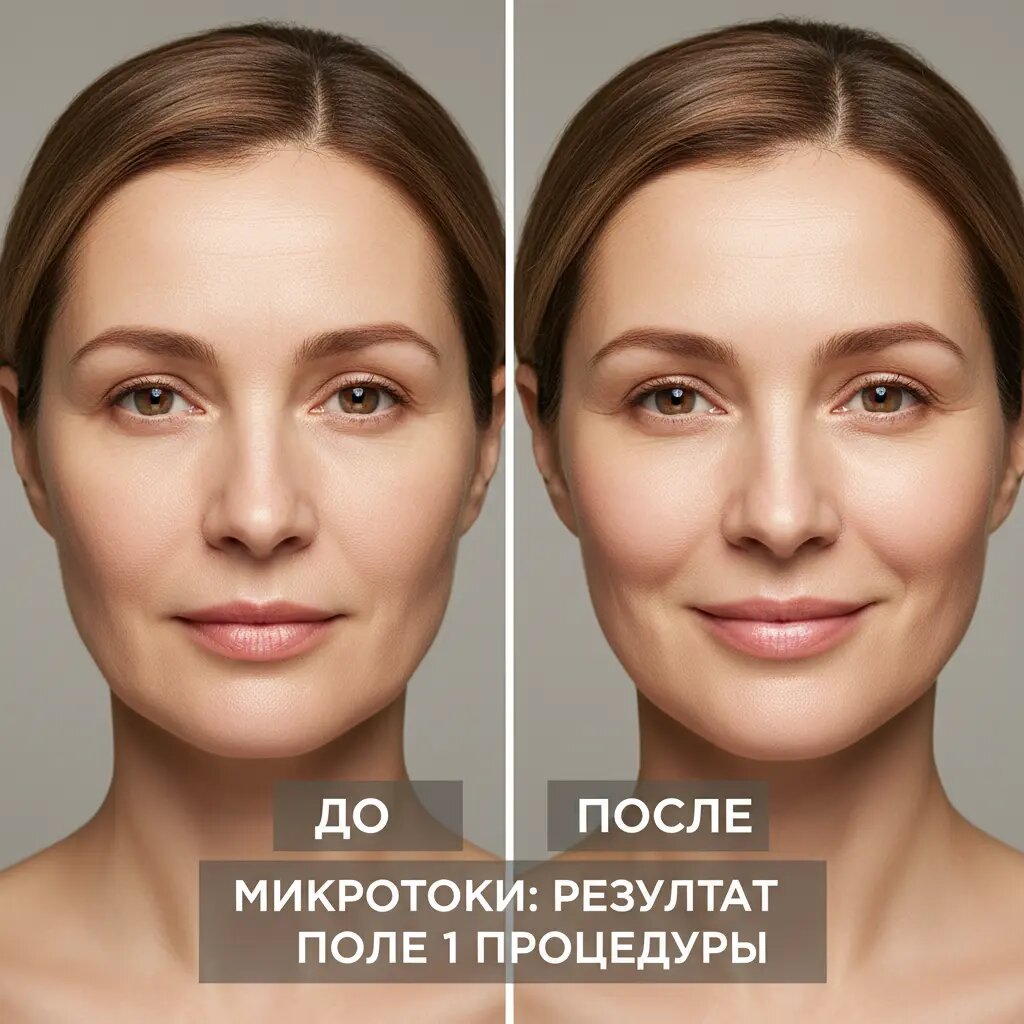 - Микротоки – «перепрограммируют» мышцы и клетки, сохраняя естественную динамику лица, без игл и синяков.