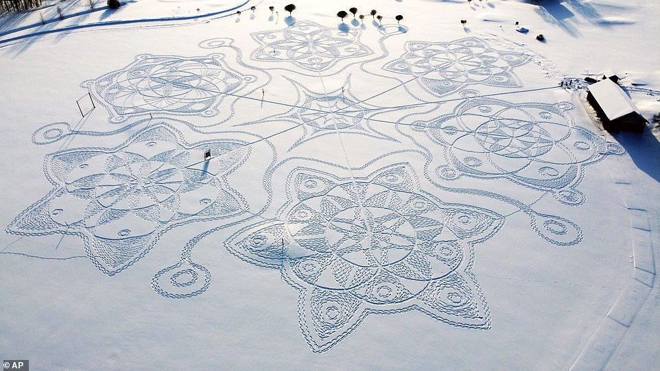 Но настоящие виртуозы идут дальше. Некоторые мастера используют специальный инвентарь, чтобы создавать на снегу гигантские, невероятно точные геометрические узоры и мандалы, которые можно оценить только с высоты птичьего полёта. Это прямое доказательство, что снег может быть не просто фоном, а полотном для масштабного искусства.