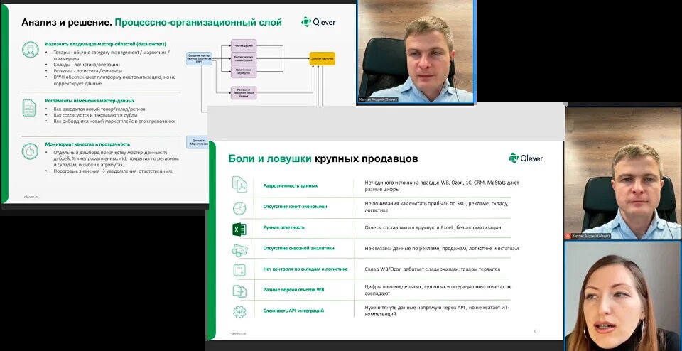 25 ноября на открытой онлайн-встрече «DWH и аналитика маркетплейсов» эксперты Qlever Solutions обсудили трудности, которые возникают при работе с данными из маркетплейсов.