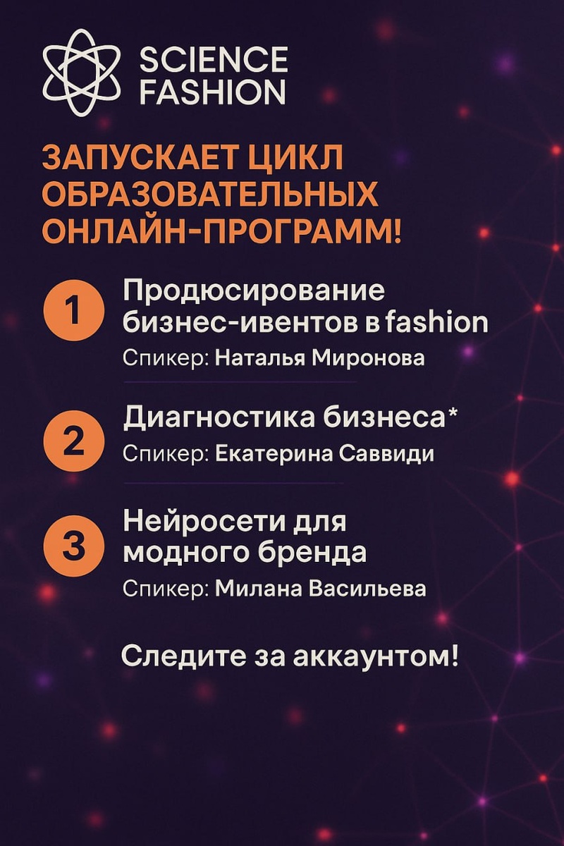 🎓 Мы запускаем цикл образовательных онлайн-программ! А вы знали, что мы готовим целую серию курсов, которые помогут вам расти в индустрии так же быстро, как меняется сама мода? Мы собрали экспертов, чтобы дать вам практику, системность и инструменты, которыми пользуются профи рынка. Вот что уже в разработке👇 1️⃣ Продюсирование бизнес-ивентов в fashion Спикер: Наталья Миронова Продюсер деловых программ модной индустрии, журналист PROfashion, куратор экспертных сессий Bee Fashion Forum, CPM, Central Asia Fashion и других крупных ивентов. Вы научитесь создавать профессиональные площадки — конференции, дискуссии, круглые столы, которые формируют повестку индустрии и работают на репутацию бренда. Старт - 20 декабря. Записаться на курс 2️⃣ «Экспресс-диагностика модного бизнеса» Спикер: Екатерина Саввиди Управляющий партнёр REFRAME, эксперт по fashion-ритейлу с 20+ годами опыта. Практикум для собственников брендов, директоров, управляющих и менеджеров. Вы увидите свой бизнес “с высо