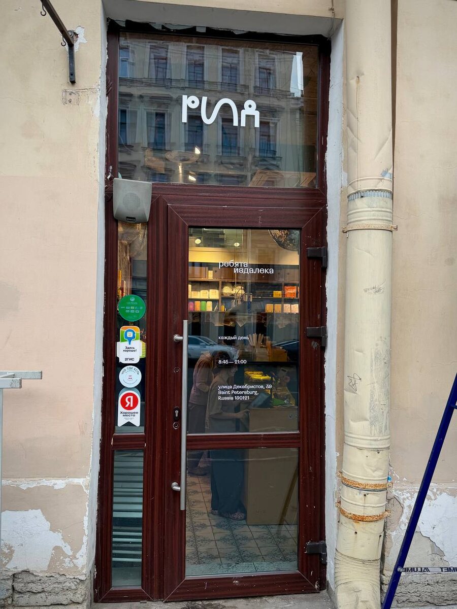 кофейня с небольшой посадкой Рид атмосферой напомнила мне Gotcha, тоже бариста подробно рассказывает про зерно, когда ты уже за столиком атмосферно и уютно выбор под воронку огромный, я взял на Эфиопии Соломон от Сварщицы очень интересный вкус ну и сырники с моцареллой и зеленью не люблю вкус творога, и следовательно сырники но эти прям очень вкусные на витрине аппетитные десерты ещё, но не сегодня