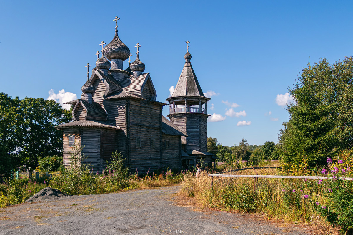 Построенная в 1783 году, эта церковь - уникальный памятник деревянного зодчества XVIII века. Она относится к типу многоглавых обонежских храмов и представляет собой многообъемную, вытянутую по продольной оси композицию, состоящую из шатровой колокольни типа «восьмерик на четверике», трехрундучного крыльца и моста, соединяющих колокольню с церковью. Прямоугольный сруб церкви разделен на две части - низкую трапезную и высокий четверик собственно храма, к которому прирублен алтарь. Завершается церковь покрытием, имевшим широкое распространение в русском деревянном зодчестве, - так называемой крещатой бочкой (соединением под прямым углом двух простых бочек). Щипец каждой бочки увенчан главкой на барабане, а в центре перекрытия врублен глухой восьмерик, на котором стоит центральная глава. В итоге получилось оригинальное, изящное по силуэту и, к тому же, отвечавшее официальным канонам пятиглавое завершение. Алтарный прируб покрыт пятигранной кровлей, верх которой заканчивается шестой главкой.