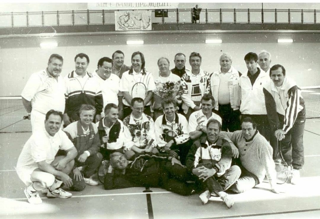 История одной фотографии. Это фото сделано в 1995 году в небольшом нефтяном городе Стрежевой Томской области. Как видно, на фото много известных людей, в том числе и из мира спорта. В 1995 году в нашем городе открылся новый спортивно – оздоровительный комплекс - «Нефтяник». Это было значимое событие не только для города, но, пожалуй, и для всего региона Западной Сибири. У нас проходили домашние игры волейбольного клуба «Самотлор», на тот момент в Нижневартовске еще не было своего зала соответствующего всем международным стандартам. Здесь же у нас проходил и кубок международной конфедерации по волейболу с участием клуба «Самотлор» представляющего на кубке Россию. Футбольный клуб «Томь», в бытность когда он играл в премьер лиге, когда за «Томь» играл Погребняк, а тренером был Бышовец проводил на базе нашего СОКа зимние сборы, где были все условия для полноценных тренировок; спортзал с размерами 54 х 36, бассейн, сауны и еще восемь залов разновидной направле