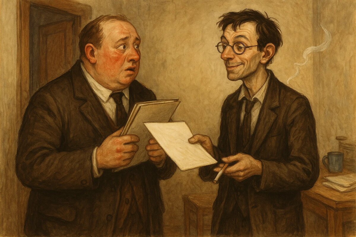 – Гриша, выручай! – простонал чиновник Поручалов, поздно вечером врываясь в дом к писателю Грише Чернилину. Тот, худой, с впалой грудью и сутулыми плечами, жил в крайней бедности и зарабатывал тем, что писал всем и всё подряд, за что могла перепасть хотя бы копейка. Встретив встревоженного друга, он проводил гостя на кухню, разлил по чашкам бледный чай, закурил и приготовился слушать. – Сегодня нам представили нового начальника! – захлёбываясь чаем, тараторил Поручалов. – А он, злодей, приказал служащим завтра с утра принести сочинение на свободную тему. – Художественное? – вдумчиво переспросил Гриша. – А какое ещё? – изумился Поручалов. – Веришь, брат, почувствовал себя школьником. А в школе я больше тройки за свои почеркушки не получал. Напишу плохо – уволит, гад! Помоги, Гриша, у тебя талант. А я тебя чем хочешь отблагодарю! Чернилин нахмурился и строго посмотрел на своего глуповатого, но простодушного товарища. – Чем захочу, говоришь? – мечтательно переспросил писатель. – Только