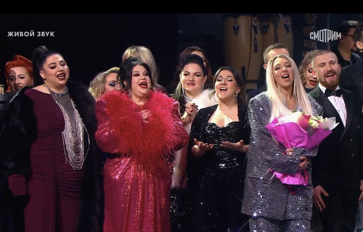 И первым же номером дали дорогу народникам. Кстати, это явно становится традицией. Как оказалось, так или иначе все вязаны с городом Владимир, ну, а хор «Русской песни» и вовсе победитель 2 сезона «Ну-ка все вместе. Хором», так что сегодня на сцене они много и долго. Так вот вместе спели заводной микс из русских народных песен «Во горенке во новой» в версии хора из Владимира. Помнится именно с ней хор дал всем понять на шоу, что народное творчество может звучать современно и трендово. Честно говоря больше звучали Марина и Олеся чем хор, но в целом чтобы задать тон и атмосферу самое то. Зрители оценили на 3035 баллов. Вяленько как-то.