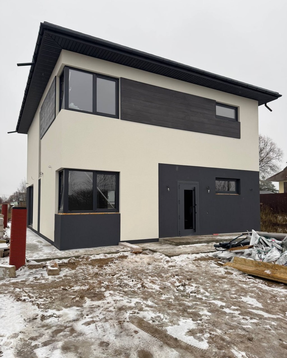 Дом на ул. Декабристов уже начинает приобретать финальный вид.✨💫 Он начинает выглядеть так, как его задумывали на визуализациях — и это всегда самый приятный момент. Сам фасад уже сформирован, и можно увидеть финальную архитектуру: большие окна, контрастные элементы, аккуратные плоскости — всё встало на свои места. Хотя территория вокруг ещё похожа на стройку, сам дом уже смотрится завершённым и уверенным ✨ Если тоже планируете строительство и хотите узнать, в какие сроки можно выйти на такой же этап — пишите в личные сообщения. Сориентируем, подскажем, поможем 😊