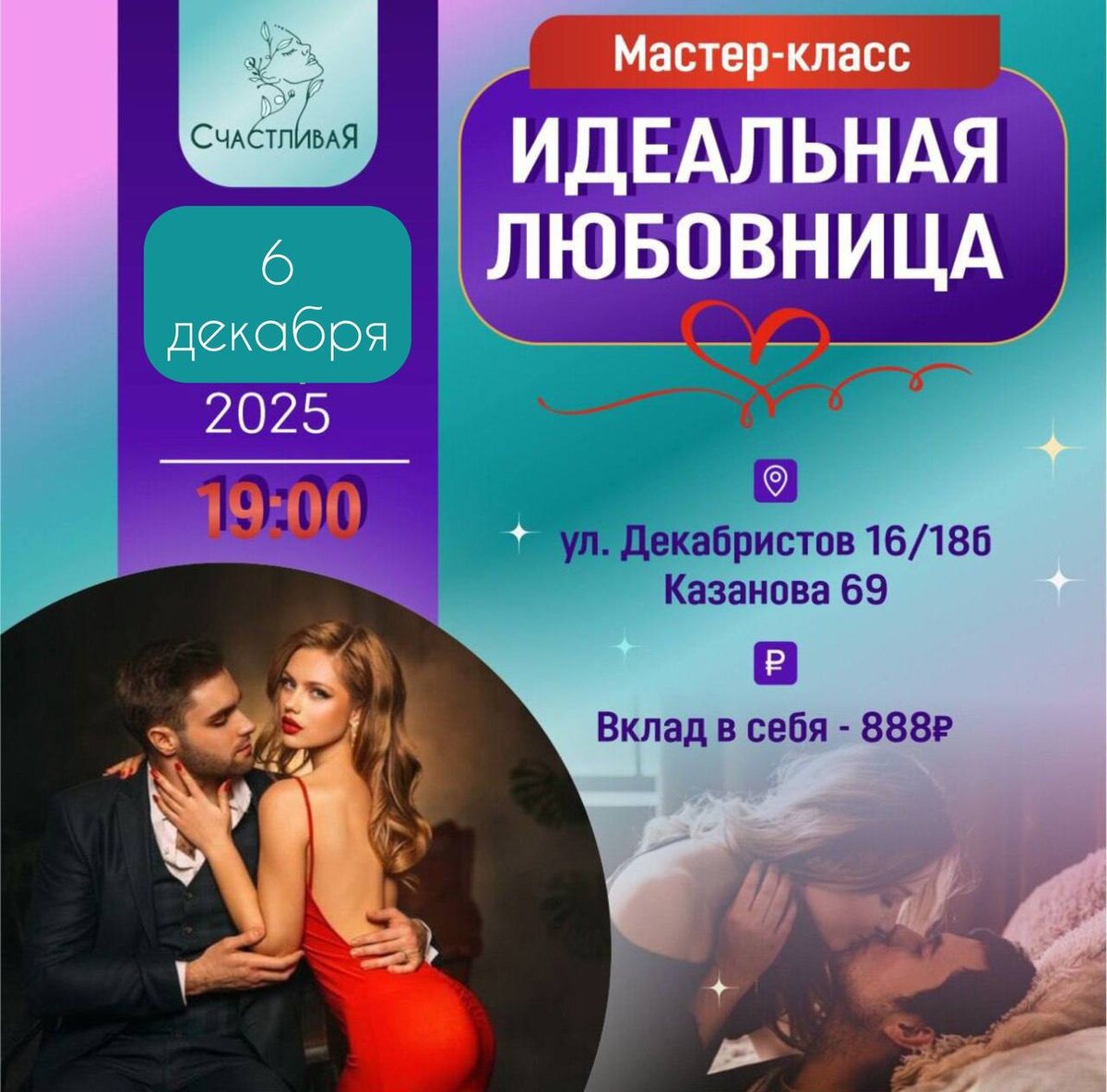 🤩🤩🤩🤩🤩🤩🤩🤩🤩🤩🤩 🤩 🤩🤩🤩🤩🤩🤩🤩🤩🤩 "Идеальная любовница" – это не просто мастер-класс, а настоящий ключик к мужскому сердцу! 🎲Ты не утонешь в пустых словах, а получишь четкие инструкции и секретные приемы, словно пошаговый рецепт вкуснейшего десерта. 6.12 суббота в 18:00 приглашаем вас на уникальный тренинг, который проведет секс-коуч и эксперт в области телесных практик и сексуального образования в студии Казанова 🔞 Безопасное пространство и конфиденциальность; Поддержка и глубокий искренний терапевтический контакт. В ПРОГРАММЕ: ❤️ Виды женских оргазмов. 👠 Пробуждение чувственности и оргазмичности. 🖤 Гарантированные техники достижения оргазма. ❤️ Переход от клиторального к вагинальному оргазму. 🤿 10 золотых правил идеальной любовницы. ❤️ Внесите яркость в ваши отношения. ♥️ Горячие прелюдии: базовые техники массажа. Этот тренинг — ваш шанс стать идеальной любовницей и подарить себе и своему партнеру невероятные ощущения! Не упустите возможность раскрыть свою сексу