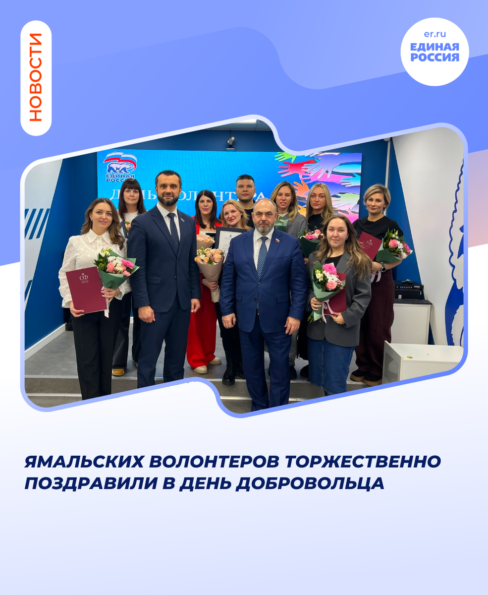 Сегодня, 5 декабря, в Международный день волонтера их вручали активистам окружной столицы и Красного креста сенатор РФ от Ямала Алексей Ситников и депутат Законодательного Собрания ЯНАО Алексей Щелконогов. Мероприятие провели на базе Штаба общественной поддержки «Единой России». Алексей Ситников вручил благодарности пятерым волонтерам от Совета Федерации РФ и поблагодарил ребят за гуманитарную инициативу. «Их действия демонстрируют настоящую гражданскую ответственность, готовность вступить в помощь в сложных условиях и внести свой вклад в сохранение природы и благополучия местных жителей. Такой опыт показывает силу единства и способности объединяться ради общего дела, что особенно важно в периоды экологических чрезвычайных ситуаций», – пояснил сенатор. Депутат ямальского парламента Алексей Щелконогов вручил активистам Красного креста благодарности от Законодательного Собрания ЯНАО и отметил, ямальские волонтеры всегда проявляли активную позицию, особенно в гуманитарных миссиях.