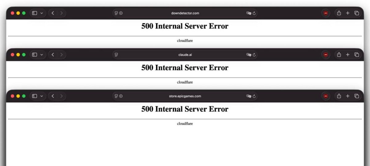 Причина тряски Cloudflare. Инфраструктурный гигант снова лёг «передохнуть» — и потянул за собой пачку сервисов. Под раздачу попали Zoom, продукты Epic Games и Valorant, а также сразу несколько ИИ-платформ, включая Perplexity и Claude. Настолько мощно упало, что лёг даже Downdetector — сайт, который должен фиксировать падения других сервисов. Cloudflare уже выкатили фиксы и продолжают мониторить ситуацию. 💬 @Mikhaylov_Review