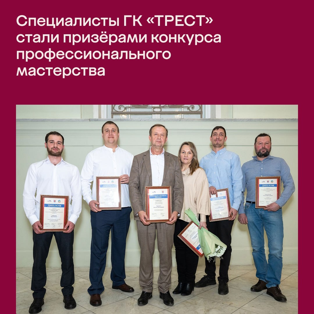 В Екатерининском собрании на канале Грибоедова поздравляли победителей конкурсов Национального объединения строителей. Всего в 13 номинациях награждены 80 человек — представители строительных компаний, учебных заведений и объединений, которые продемонстрировали мастерство в различных строительных специальностях. В Группе компаний «ТРЕСТ» по итогам 2025 года дипломами отмечены: Юлия Аренина — лучший руководитель отдела подготовки и передачи помещений; Резо Ткебучава — лучший специалист отдела подготовки и передачи помещений; Артём Банников — лучший специалист отдела гарантийного сопровождения; Александр Седов — лучший специалист отдела строительного контроля; Роман Комановский — лучший каменщик.