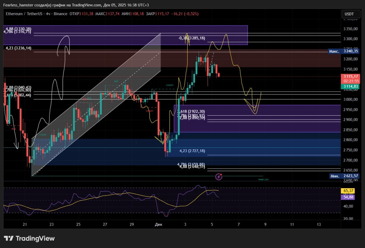 ETHUSDT ПЛАН ПО ЭФИРУ😎 По эфиру жду коррекцию, в районе цены 3000$ буду потихоньку набирать позицию в лонг, с последующем добором на уровнях 2800$, 2600$, ну и если уж дадут ниже, то и на уровне 2600$. 📉 Цель: 3400$🚀 PS: в шорт вставать сейчас не хочу.😏 #ETH #крипта