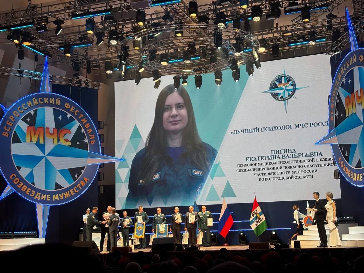 ☎️На Всероссийском фестивале «Созвездие мужества» состоялось торжественное награждение лучшего психолога МЧС России ❗❗❗ Глава МЧС России Александр Куренков наградил лучших сотрудников министерства, ставших победителями ежегодного Всероссийского фестиваля «Созвездие мужества». 🏆Церемония состоялась в концертном зале им. А.М. Каца в Новосибирске. 🥇Психологическую службу МЧС России представляла психолог медико-психологической службы СПСЧ ФПС ГПС ГУ МЧС России по Вологодской области Екатерина Пигина. 💙Екатерина работает в психологической службе МЧС России с 2022 года. Выбор профессии был обусловлен тем, что с детства испытывала потребность помогать людям. Она пишет философские стихи, любит путешествовать и изучать менталитет и традиции местных жителей. 💐В сентябре 2025 года она блестяще выступила на профессиональном состязании «Лучший психолог», которое ежегодно приурочено к дню создания Центра экстренной психологической помощи МЧС России, заняв первое место. ✅Фестиваль «Созвезди