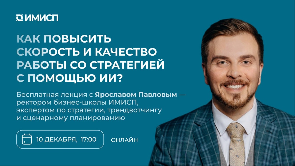 Классический цикл стратегии сломан. Те, кто занимался стратегией, привыкли: долгий сбор данных, потом стратсессии, месяцы на оцифровку. Пока ключевой стратегический документ доходит до реализации, контекст уже сменился. Вы готовитесь к битве, которая закончилась вчера. Скорость адаптации сейчас важнее точности прогноза. ИИ дает нам уникальную возможность: сжать время. Превратить месяцы аналитики в часы. Не для того, чтобы быстрее написать "красивый документ", а чтобы быстрее понять, что происходит вокруг. Не идеально, а своевременно. 10 декабря я проведу бесплатный вебинар на очень прикладную тему: «Как повысить скорость и качество работы со стратегией с помощью ИИ». Это один из вебинаров в серии, которую мы в ИМИСП запустили, чтобы помочь бизнесу адаптироваться под изменения в канун 2026 года. Рассмотрим, как быстро проверить, есть ли у стратегического решения шансы оказаться хорошим, как с помощью ИИ сделать анализ внешней среды и быстрый вариант сценарного планирования. Приходит