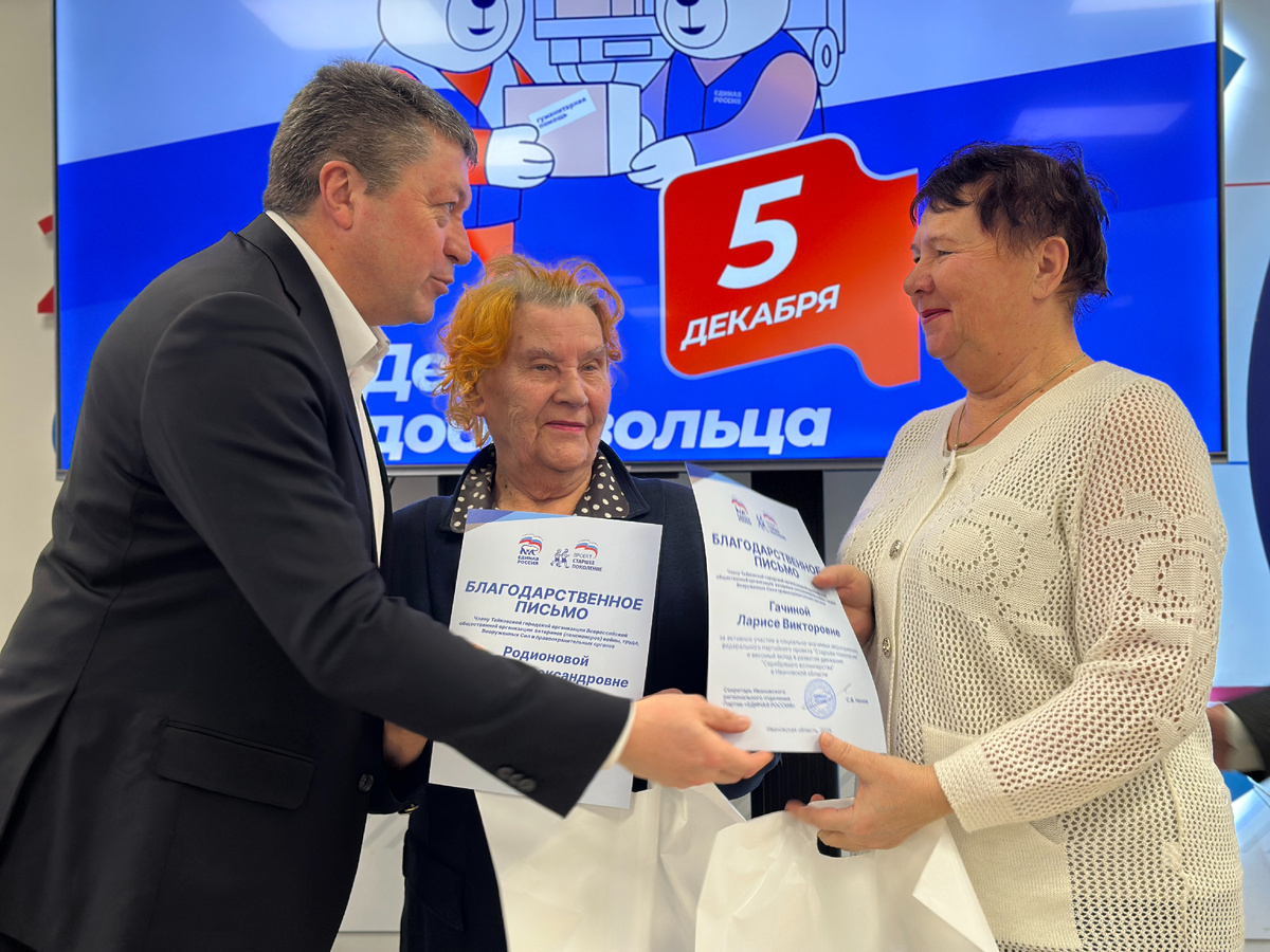 На площадке Штаба общественной поддержки «Единой России» состоялось торжественное мероприятие, посвящённое добровольцам Ивановской области. С приветственным словом выступили Александр Масленников – председатель комитета по труду, занятости и делам ветеранов в Ивановской областной Думе, председатель Ивановского регионального совета сторонников партии «Единая Россия» и Леонид Лампасов председатель Ивановского отделения Всероссийской общественной организации ветеранов (пенсионеров) войны, труда, Вооруженных сил и правоохранительных органов, председатель регионального общественного совета партпроекта «Старшее поколение». В рамках мероприятия состоялось вручение благодарственных писем волонтёрам, чьи усилия заслуживают особой признательности. Награды получили волонтёры районных общественных организаций ветеранов муниципалитетов Ивановской области, студенты Ивановского автотранспортного колледжа и активисты «Молодой гвардии Единой России». И конечно, отметили волонтеров, принимающих участи