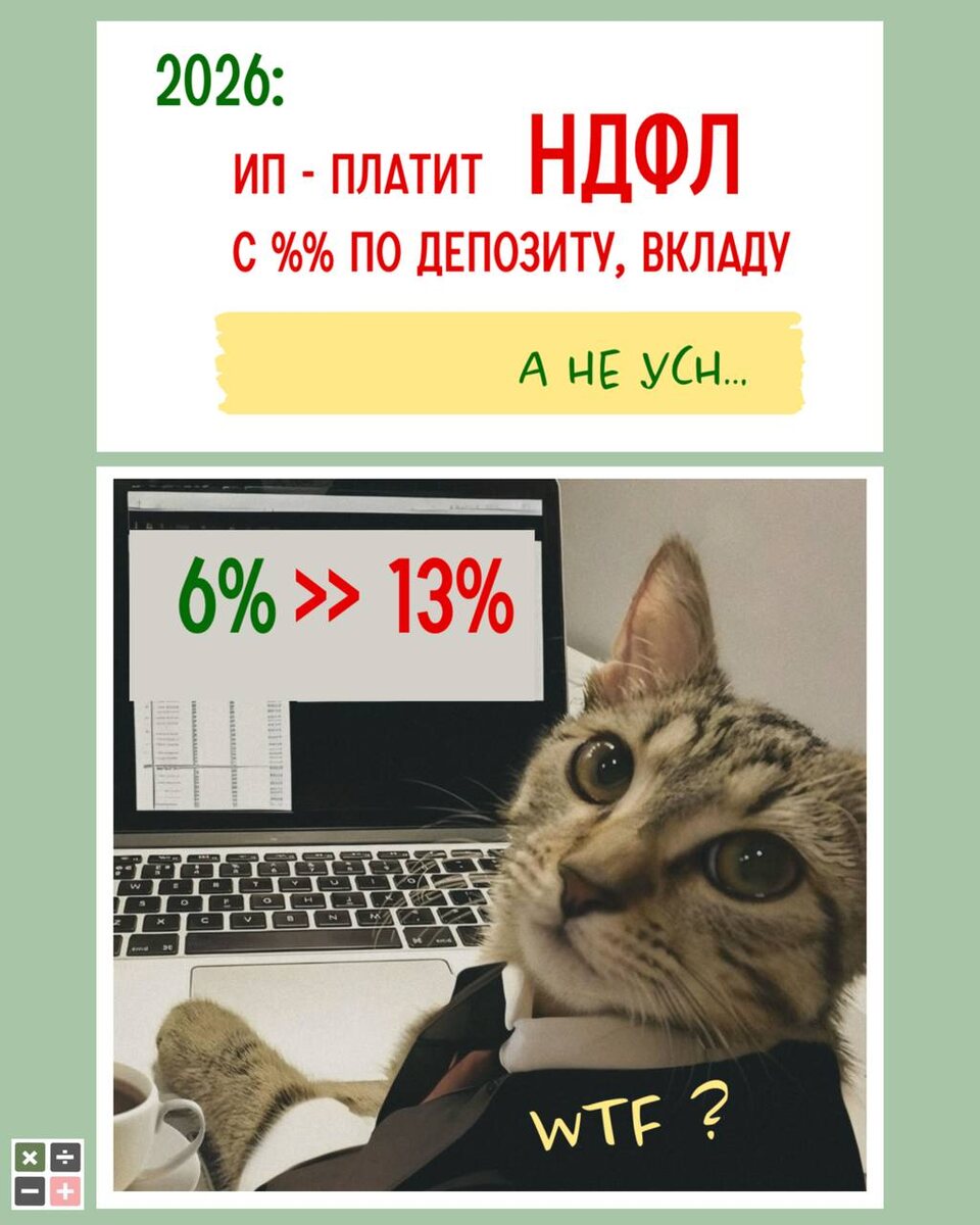 ИП - будет платить НДФЛ с доходов по депозитам и вкладам, начиная с 2026 года (не по системе налогообложения ИП) 🟣 Как сейчас (2025) - если ИП кладёт деньги на депозит/вклад - полученные проценты облагаются по спецрежиму, который он применяет (УСН, АУСН и пр.) - если обычное физлицо - проценты облагаются НДФЛ 🟣 Как будет в 2026 Норма будет единой. Неважно, в каком статусе открыт вклад - ИП или просто физлицо. Проценты будут облагаться только НДФЛ, а не по спецрежиму ИП * Основание - новая редакция п.3 ст.346.11 НК 🟣 Что нужно сделать В 2026 году в бухгалтерских программах необходимо проверять, чтобы проценты, поступившие на счёт ИП, не облагались УСН. Иначе может случиться, что ИП заплатит налог дважды: - один раз УСН - второй раз НДФЛ как физик, по уведомлению налоговой по итогам 2026 года. #ИП #ндфл #ндфлспроцентов #школабухгалтера