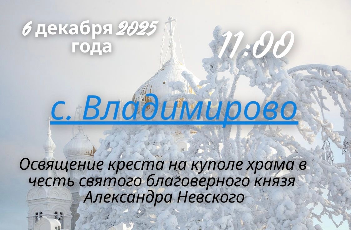 Торжественное освящение и водружение Креста на куполе храма святого Александра Невского в селе Владимирово. Дата: 6 декабря 2025 года. Время: 11:00. Место: село Владимирово, Мамадышский район. ✅ Подписаться l Мы в Max