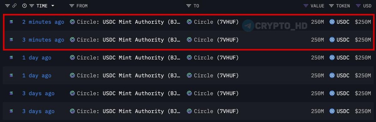 Π Circle Π½Π°ΠΏΠ΅ΡΠ°ΡΠ°Π»ΠΈ ΡΠ²Π΅ΠΆΠΈΠ΅ 500,000,000 #USDC.