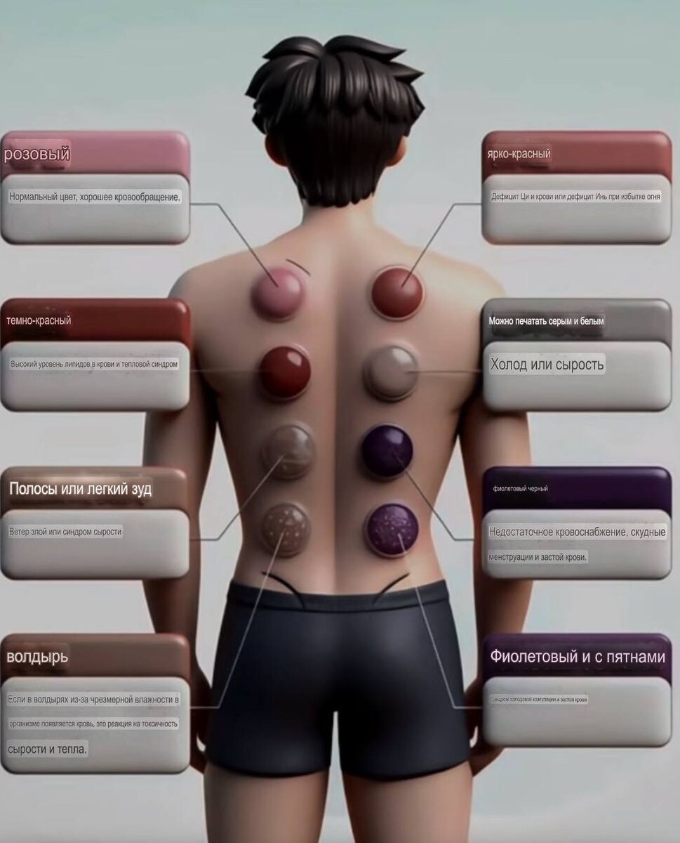 Посмотрите на следы от банок после процедуры! Эти 8 цветов соответствуют сигналам тела 💥 Каждый раз после банок я пристально смотрю на пятна на спине, так как это важно. На самом деле, разные цвета — это то, как ваше тело «говорит»! Сегодня я делюсь с вами секретной таблицей соответствия пятен от банок -расшифровка в комментариях🧩 ⚠️Важное замечание: пятна от банок — лишь ориентир на состояние тела, они не могут заменить профессиональный диагноз! Если вам плохо, стоит обратиться к врачу!