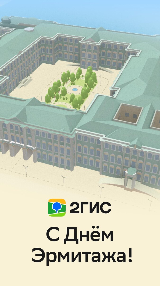 Говорят, чтобы обойти весь Эрмитаж, нужно больше суток 👀 А чтобы рассмотреть его в деталях, достаточно открыть 2ГИС. Ко дню Эрмитажа мы оживили его на карте: Малый, Новый и Большой Эрмитаж теперь видно так, как не покажет ни один ракурс с Дворцовой. Гуляйте по музею, не теряясь в его масштабе — хоть виртуально, хоть по-настоящему.