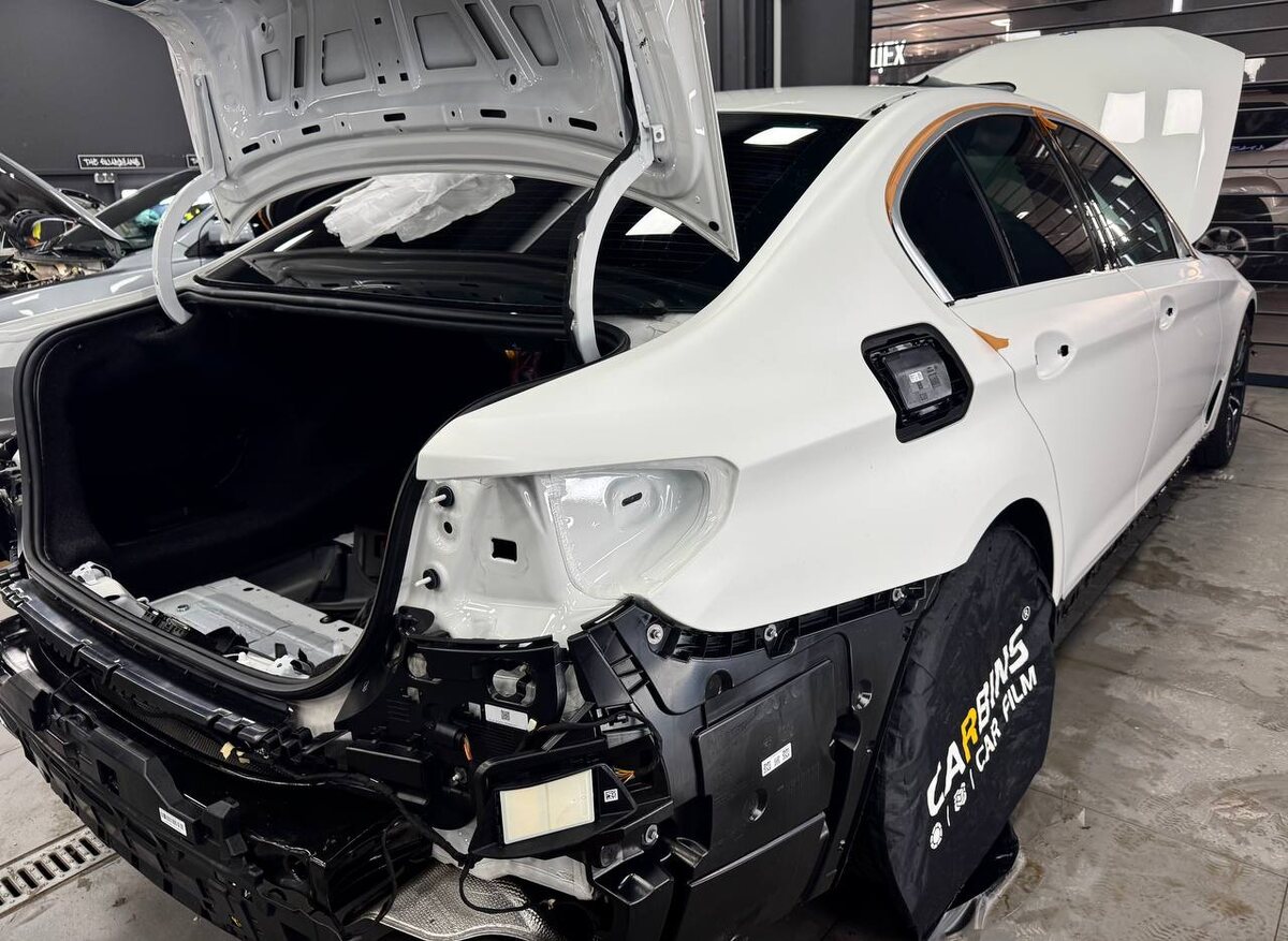 Повышение утильсбора, безусловно, напугало многих. За последнее время к нам приехало сразу несколько автомобилей из Кореи, самыми популярными из которых стали авто марки BMW. Автомобили с некоторыми капризными "нюансами" при разборе, но тем не менее мы ВСЕГДА будем клеить только с разбором и никак иначе! Если где-то вам говорят, что клеить лучше в сборе (мол, так наоборот надежнее, зато точно ничего не сломается) - то на самом деле это говорит лишь об одном: в штате нет хорошего арматурщика, скорее всего нет отдельной мойки, ребята работают на поток, а не на качество. Оклейка в сборе и с отступами (а они в любом случае будут) чревата испорченным внешним видом и повышенным риском подрыва пленки при эксплуатации (и в частности при мойке автомобиля). Полиуретановая пленка - это, в первую очередь, НЕЗАМЕТНАЯ защита вашей машины! Хотя, конечно, автомобиль приобретет невероятный блеск и гидрофобный эффект, а при оклейке в матовый полиуретан - приятную мягкость и невероятную тактильность. И в