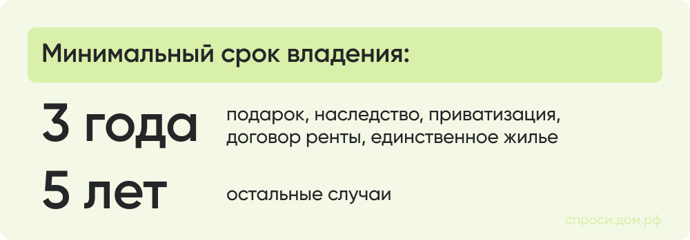 Минимальный срок владения в 2025 году: ❗ Важно: С 01.01.2026 года планируется вернуть общий срок в 3 года, но для продажи в 2025 году действует правило 5 лет для "остальных случаев".