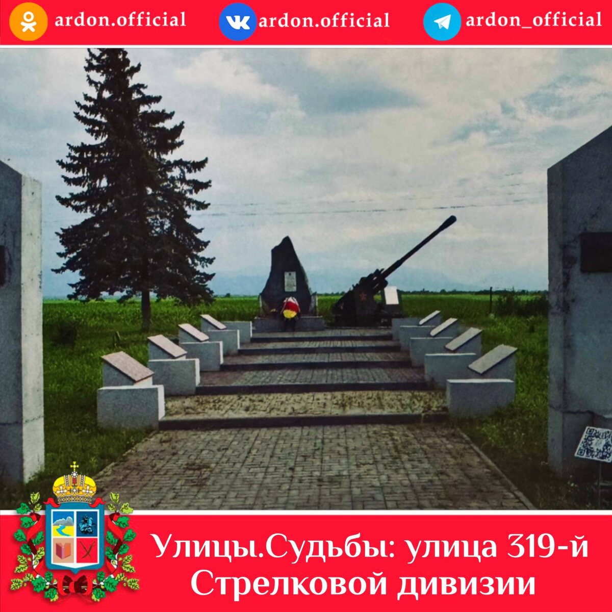 «Улицы.Судьбы: Истории людей, чьи имена увековечены на улицах, площадях и скверах города Ардона». 📍Улица 319-й Стрелковой дивизии Есть в Ардоне улица, названная в честь легендарной 319-й Стрелковой дивизии. Эта дивизия осенью 1942 г. героически сражалась и освобождала от врага нашу землю. Жители района всегда помнят подвиг бойцов дивизии и бережно ухаживают за братскими могилами павших воинов. 3 января 1943 г. наши войска освободили город Моздок и территория Северной Осетии была полностью очищена от гитлеровских оккупантов. В составе интернациональной 319-й Стрелковой дивизии отважно сражались наши земляки - Давид Авсарагов, Мурат Леков, Казбек Бадриев, Касполат Коцоев, Захар Кулаев, Хазби Черджиев, Аркадий Гагкаев. В боях за Ардон отличилась танковая рота старшего лейтенанта Гусова. Лётчик-штурмовик Василий Шамшурин повторил подвиг Николая Гастелло, направив пылающий самолёт в скопление немецких танков под Ардоном. 30 тяжелораненных бойцов вынесла с поля боя медсестра Анна Струче
