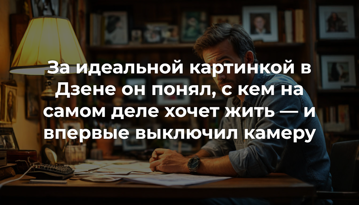 Антон машинально обнял её за плечи, чуть сильнее, чем нужно, и посмотрел в объектив. В эту секунду он уже видел, как получится кадр: он — уверенный, бодрый, в худи без единой катышки; Марина — нежная, с мягкой улыбкой. И никто не заметит, что он не ел эти блинчики, а до этого полчаса ходил по кухне, сверяясь с планом задач на неделю.