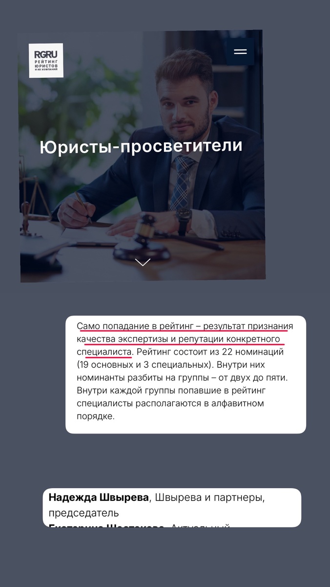 Я попала в рейтинг юристов от Российской газеты в номинации «юрист-просветитель»