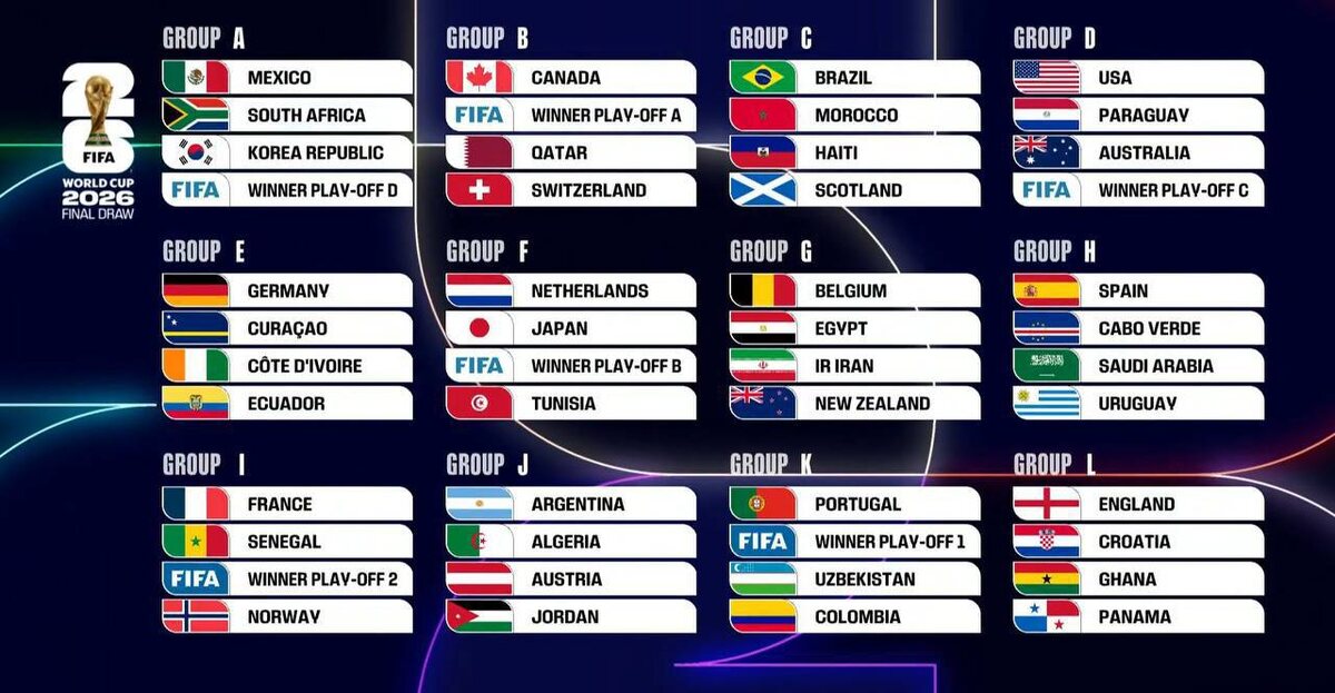 Узбекистан сыграет с Португалией Криштиану Роналду: в Вашингтоне прошла жеребьевка Чемпионата мира по футболу 2026. Также жребий свёл в одну группу Англию с Хорватией, Бразилию с Марокко, а Испанию — с Уругваем. Сборная Украины может сыграть против Нидерландов, если одержит победу в мартовских стыковых матчах. ЧМ пройдет с 11 июня по 19 июля 2026 года в США, Мексике и Канаде.