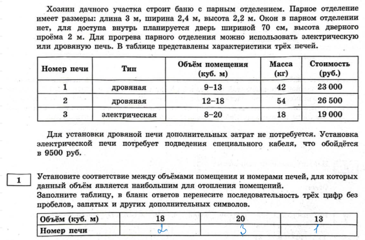 Подписывайся на мой ТГ канал 🤗 Ответ: 231 №2. Найдите площадь пола парного отделения строящийся бани. Ответ дайте в квадратных метрах. Ответ: 7,2 №3. На сколько рублей покупка дровяной печи, подходящей по объёму парного отделения, обойдётся дешевле электрической с учётом установки? Ответ: 2000 №4. На электрическую печь сделали скидку 15%. Сколько рублей стала стоить печь? Ответ: 16150 Печь снабжена кожухом вокруг дверцы топки. Верхняя часть кожуха выполнена в виде арки, приваренной к передней стенке печки по дуге окружности с центром в середине нижней части кожуха. Для установки печки хозяину понадобилось узнать радиус закругления арки R. Размеры кожуха в сантиметрах показаны на рисунке. Найдите радиус закругления арки в сантиметрах. Проведём радиус в угол, чтобы получить прямоугольный треугольник. Поскольку радиусы у окружности равны, можем найти тот радиус, который мы провели просто по теореме Пифагора: Ответ: 65 Ответ: 3,5 Ответ: 4 Посмотреть как сравнивать обыкновенные дро