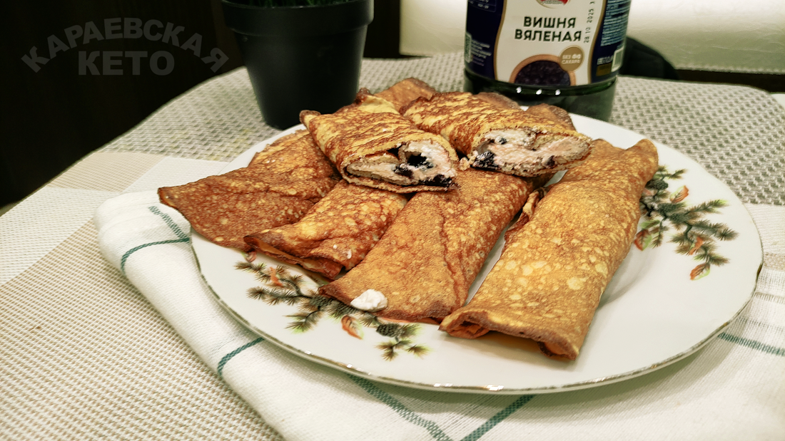КЕТО БЛИНЧИКИ С ТВОРОГОМ И ВЯЛЕНОЙ ВИШНЕЙ
