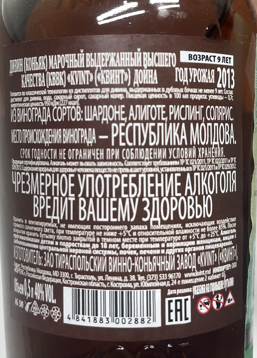 Есть такие напитки, о которых мы узнаем только через общение с ребятами из разных городов и регионов. Кто-то прочувствовал любовь к напиткам из Молдавии, поделился фото, и понеслось. Итогом двухлетней экспроприации ресурсов из Ярославской и соседних областей явилось то, что Квинт можно найти только в 5, 10 и только в КиБ. И если кому-то попадается Дойна, то очередь растягивается даже за углом. Второй раз мне посчастливилось получить посылку с этим напитком. 6 лет я продегустировал, отзыв есть, настала очередь 9 лет. Андрей спасибо за посылку. Ну что, погнали «от Квинта»! Дойна 2024 год, 9 лет, 40% Аромат Налил, 2 минуты, и все — напиток готов к употреблению. Не надо «колдовать» с недельным ожиданием, как с некоторыми розливами десятки (мне лично только такие попадались розлива 2025). Сразу на первом плане аромат полей и лугов с цветами, специи, немного бочковой ванили, сухофруктов, кунжут, какие-то фруктовые нюансы и грецкий орех. Ожидаемый аромат, достойный своей цены до 1000 рубл