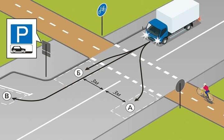 Предлагаю очередную сложную задачу по правилам дорожного движения. Ситуация такая. Водитель грузового автомобиля до 3,5 тонны решил выполнить стоянку. Ответьте на вопрос. В каком месте можно выполнить стоянку. А, Б, В? Хорошо подумайте прежде чем смотреть ответ. Он будет ниже.