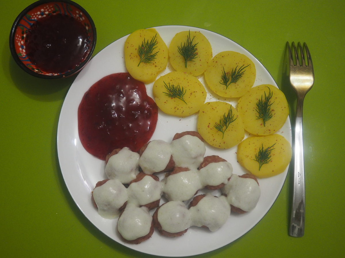 Когда мы с семьёй первый раз побывали в магазине ИКЕА, то были сильно впечатлены. И не комодами и ковриками… Там в ресторанчике мы ели маленькие шведские фрикадельки с картофельным пюре и брусничным соусом. Вкуснятина! Дети потом стали часто проситься в ИКЕА)) Мы поехали снова, и после трапезы ещё с собой прикупили большой пакет замороженных фрикаделек и соус в стеклянной баночке.