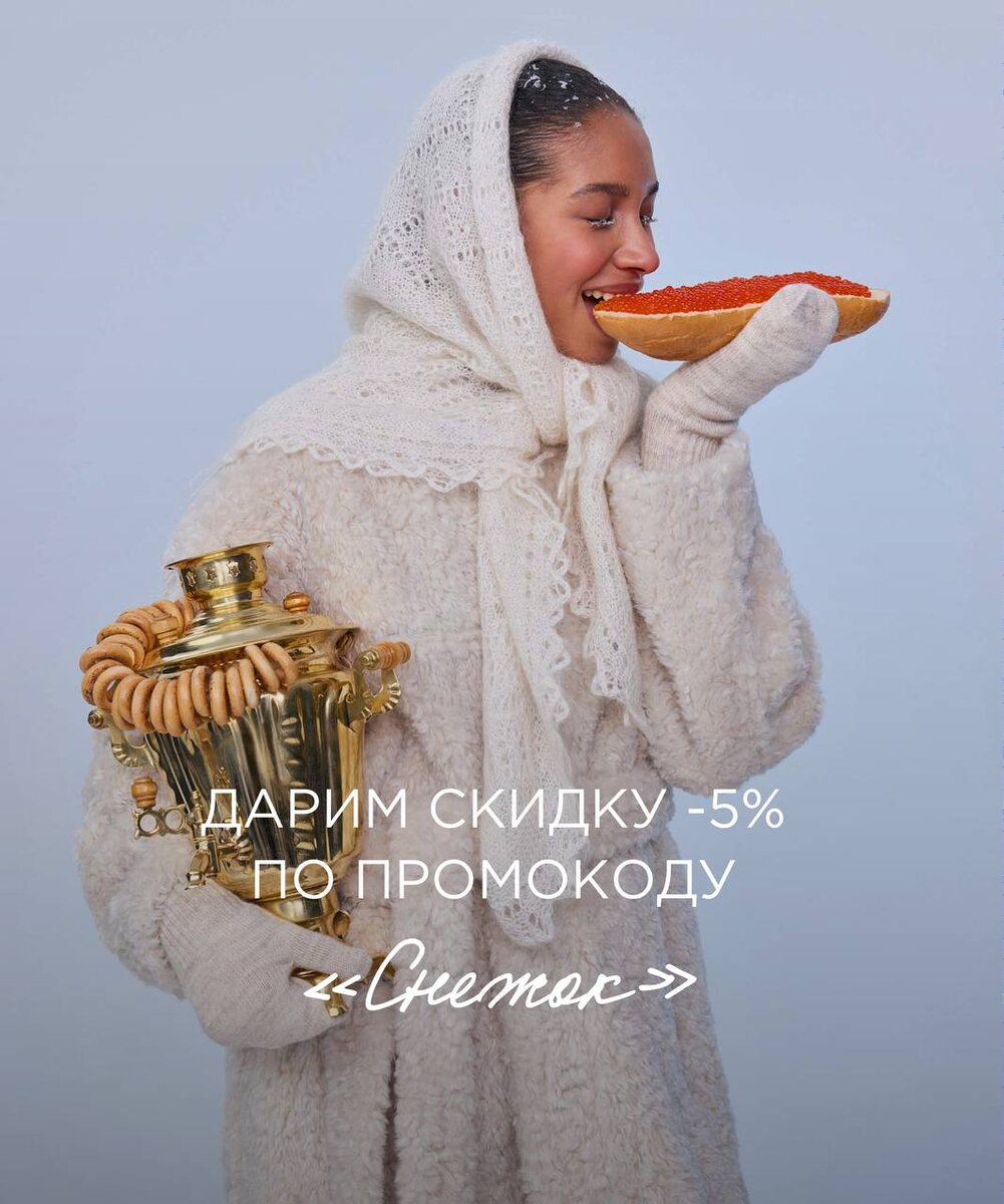 Погода не радует нас снегом, поэтому мы решили взять всё в свои руки и подарить скидку -5% по промокоду «Снежок» на уютные обновки от Евдокии.