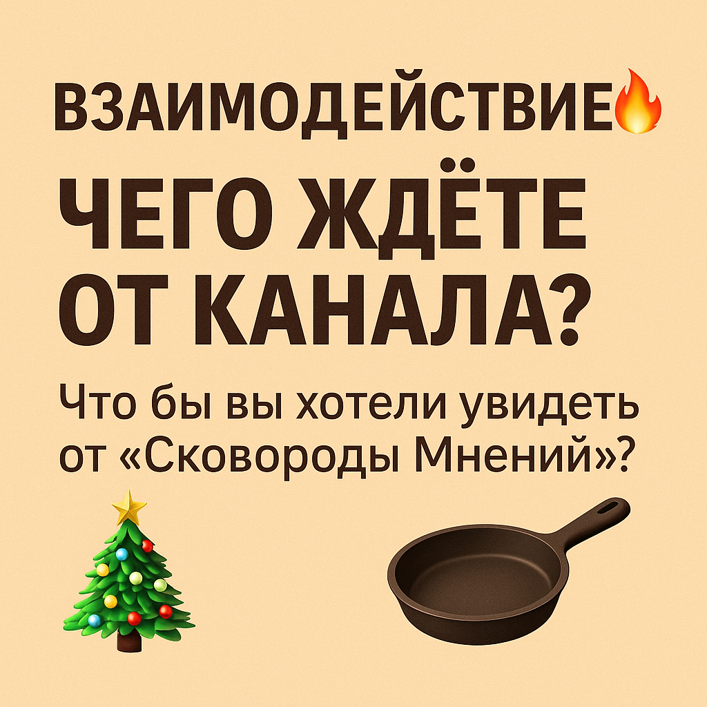 «Да, вот это народ должен попробовать!» Так вот вопрос назрел 👇 ❓Что вы хотите увидеть следующим от «Сковороды Мнений»? Вариант 1 — Конкретное блюдо Например: тот самый «разрывной» лук уже вышел, могу сделать хрустящую картошку, которая тает внутри, домашнюю шавуху уровня «всё, жизнь удалась», мясо, которое не пересушить даже если захотеть. Скажите прямо: что давно хотели научиться готовить? Вариант 2 — Фирменная разработка к Новому году 🎄🔥 Тут я могу разгуляться по полной: Авторская закуска «улетает за 5 минут» Горячее в стиле «жрал бы и молчал» Десерт без выпечки, но с эффектом «ого-го!» Салат, который заменит Оливье, но не будет выглядеть как предательство Родины 😅 Соус, который поднимет любой стол на уровень «шеф от Бога» Праздники на носу — могу выкатить прям легендарный рецепт, которого нет в интерне
