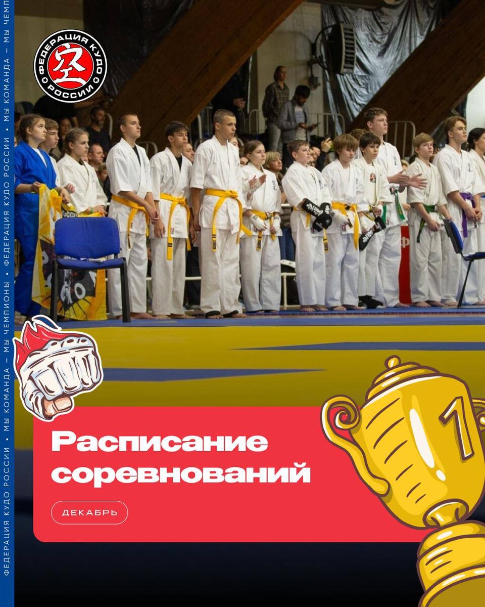Расписание соревнований 🏆 ⠀ Друзья, напоминаем вам о соревнованиях, которые пройдут в декабре: ⠀ 🗓 13.12.25 ⠀ Первенство России (отборочные бои) ⠀ 🗓 14.12.25 ⠀ Первенство России по кудо (полуфиналы и финалы) ⠀ 🗓 21.12.25 ⠀ Межрегиональные соревнования в г. Вологде «Новогодний Кудоист» на призы спортивного клуба «Ярославич» Общеклубная аттестация спортсменов г. Москвы ⠀ 🗓 28.12.25 ⠀ Межрегиональные соревнования в г. Пскове Межрегиональные соревнования по кудо «Кубок Деда Мороза 2025» ⠀ Принимайте участие и покажите наилучший результат! Ос!