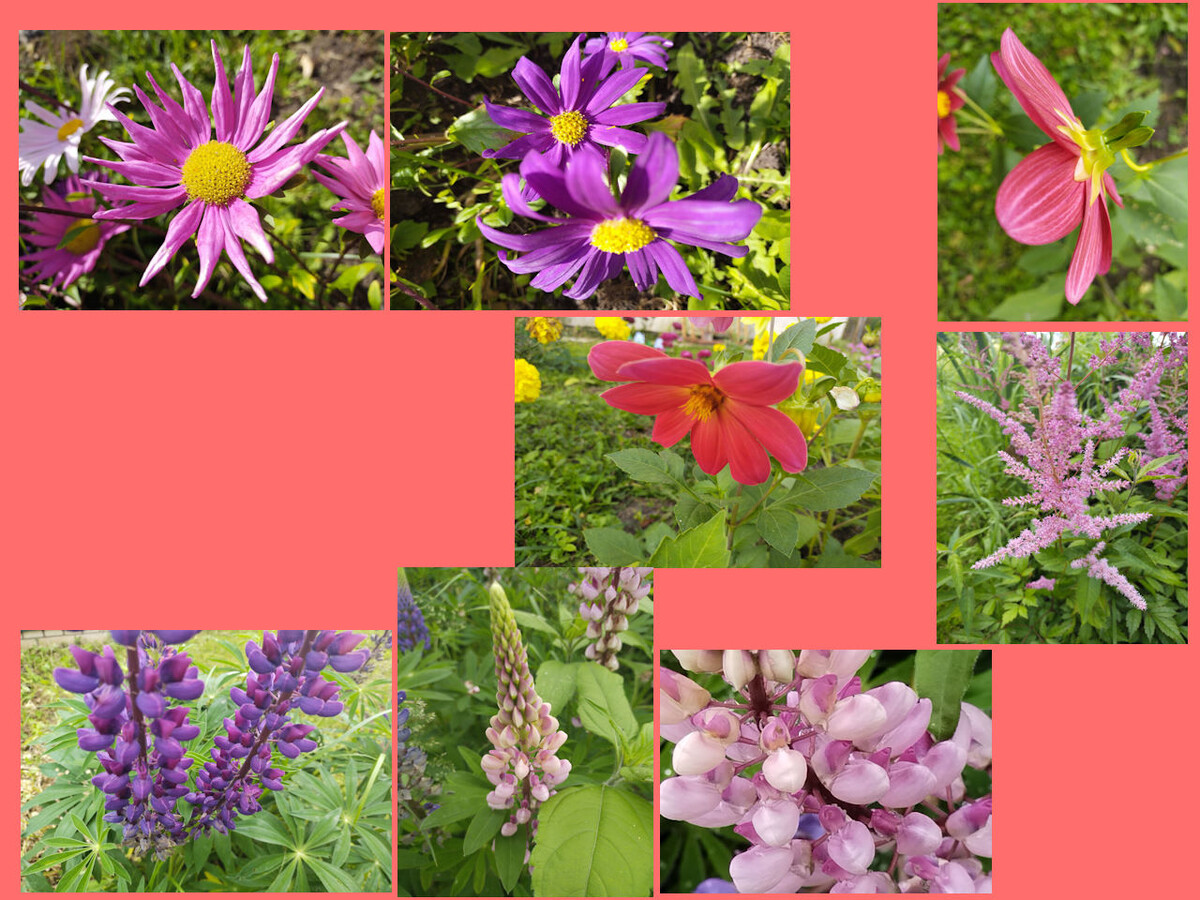 Яркое лето. Яркое солнце. Яркая трава. И яркие цветы. Праздник жизни. Все растет. Вокруг появляется разнообразие. И словно художник на сцену выходят они – цветы. Самые разноцветные. Словно самая яркая палитра художника. Они цветы – главные звездочки. Сияют словно звезды в далеком космосе яркими цветами. Мгновения пестроты. Сочные цвета. Словно сочный фруктовый напиток. Яркие цвета словно самый радостный художник взял и нарисовал что-то красивое и доброе. Лето такое красивое благодаря траве солнышку и им – цветам. Вот такие мгновения запоминаешь. Как главные и важные мгновения в жизни. Просто сидишь в саду и смотришь что у тебя там растет. А некоторые цветы растут сами по себе. И ничем не хуже и не лучше всех остальных. Какие-то цветы однолетние. Многие садовые растения. Зато очень яркие и красивые. Вот удивляешься какая красота выросла в саду. Сегодня фиолетовый, оранжевый, красный. Такие сочные и цвета в самом своем пике. Пик цвета. Красный, оранжевый, синий, фиолетовый. Такая па